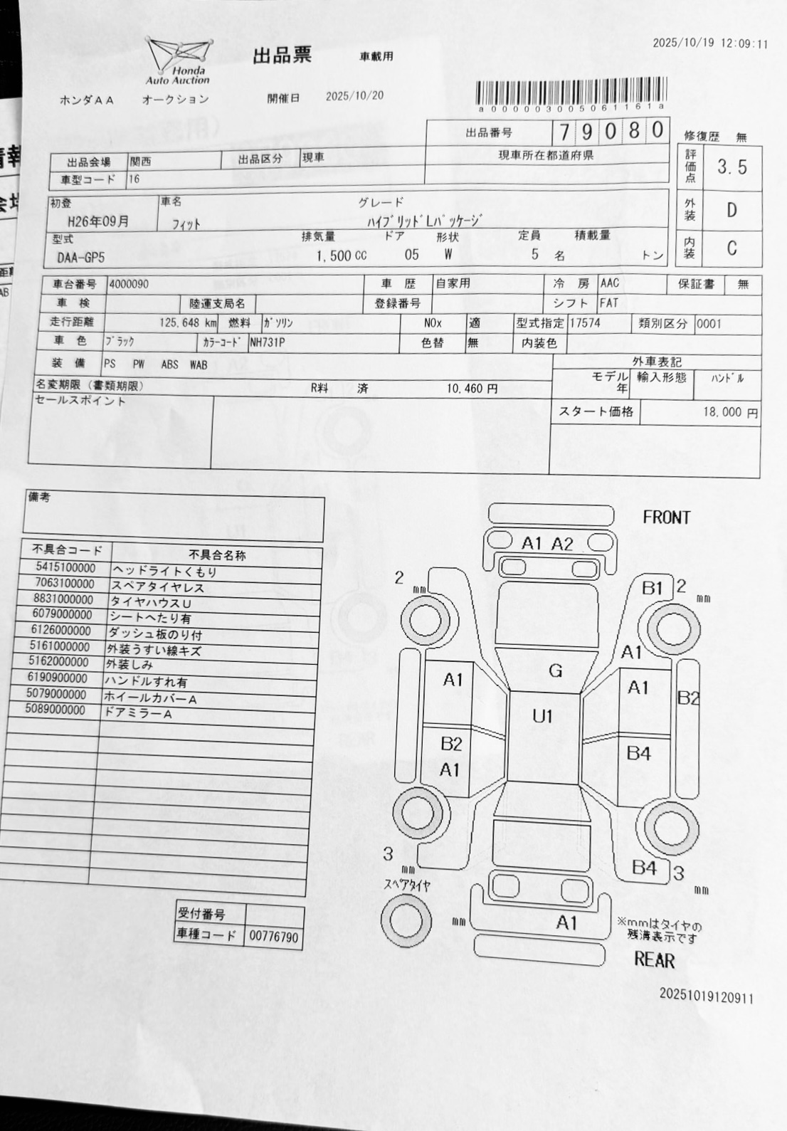 · Model: 2014 Honda Fit Hybrid L Package · Fuel Type: Fuel-Efficient Gasoline Hybrid · Transmission: Automatic · Mileage: 125,648 km · Color: Black · Features: Power Steering, Power Windows, ABS, Auto AC